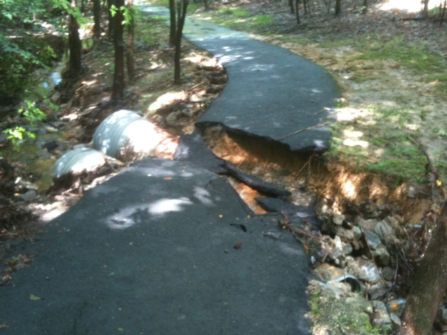 Storm runoff (video), June 10, 2013—Heavy stormwater runoff and creek flow near walking path